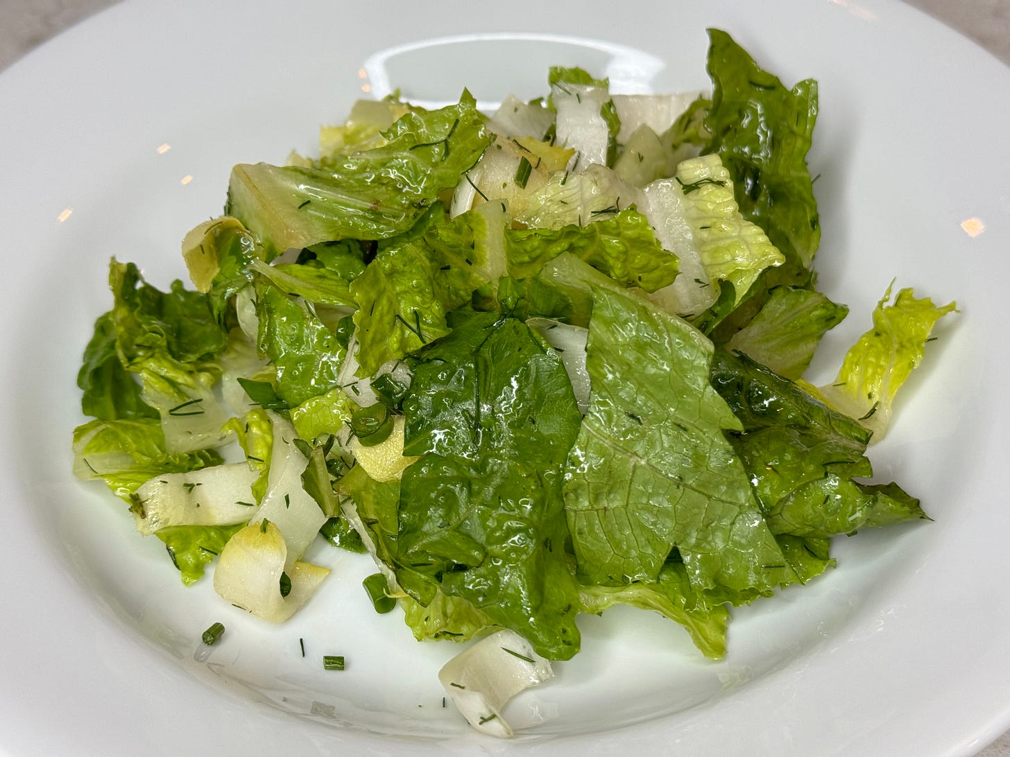 While everything was pretty tasty this week, honestly I think this salad was my favorite. It is incredibly simple, but the dressing of olive oil and red wine vinegar mixed with the brightness of fresh dill was the ultimate palate opener. This salad alone has me wanting to grow some dill in my summer garden.