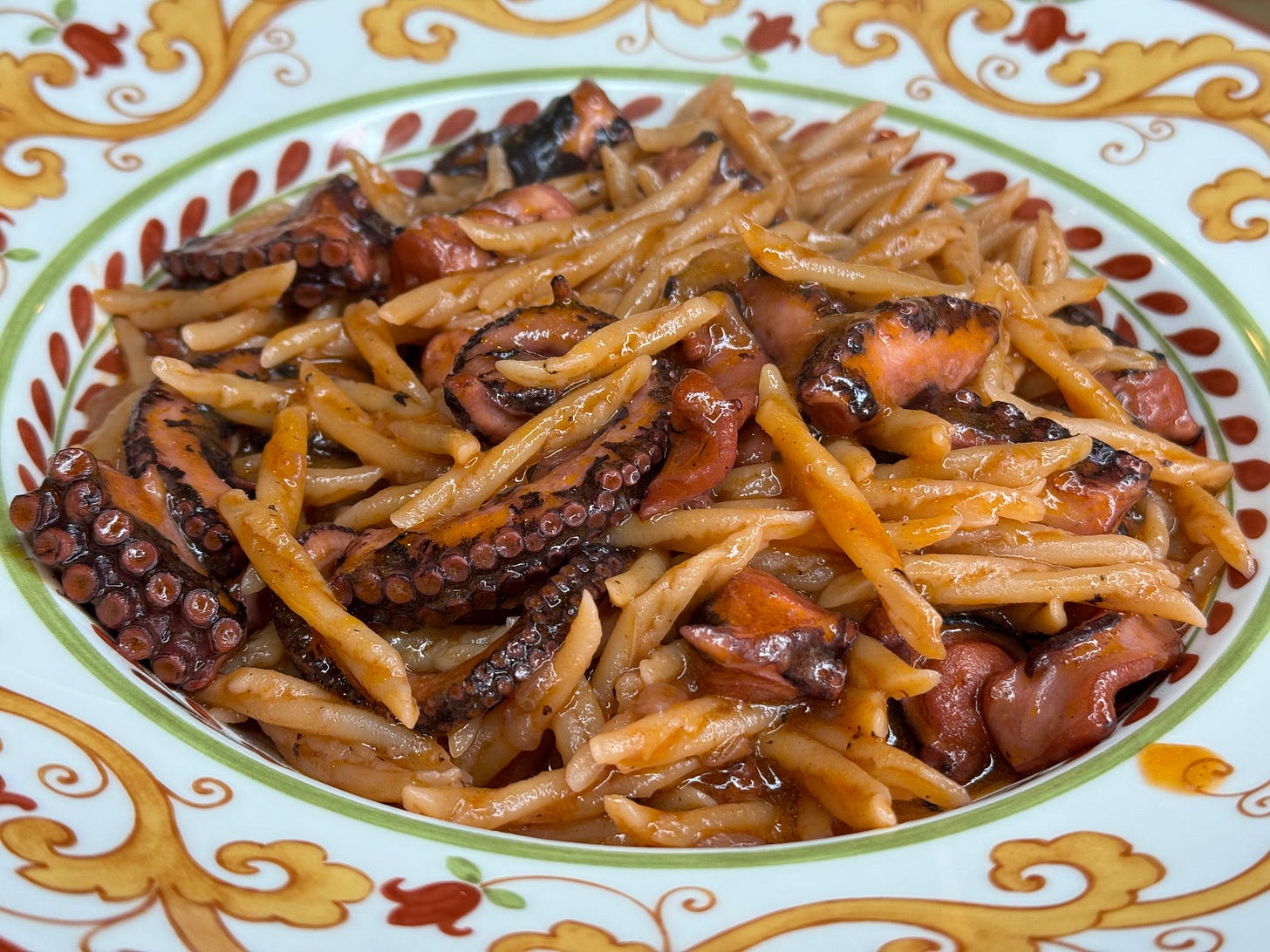The final, weekend dinner consisted of an ultra brightly flavored Psilokomeni salad, octopus pasta, and walnut baklava for dessert.